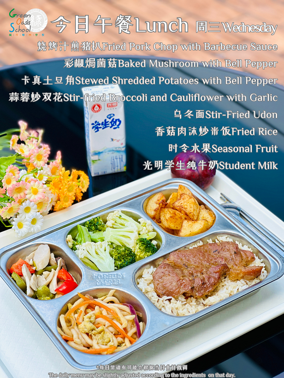 After a pleasant summer vacation, the children in GOS are pleasantly surprised to find that the food in the school canteen are different! Yes! We are well aware that diet is crucial for children's growth and development. Thus, to meet the diverse needs of students for lunch and provide a better dining experience, the canteen has optimized the menu structure and launched a new Western food menu. The main dishes of Western food include Salmon steak with cream, Beef steak with black pepper, Chicken steak with black pepper, Baked Basa fillet with lemon, etc. The side dishes of Western food include baked pumpkin with cheese,braised mushrooms with white sauce,olive oil seasonal vegetable, etc. Three Chinese meals and two Western meals a week not only enriched the taste buds of students, but also made students full of expectations for lunch every day. At the same time, we adopt a form of alternating Chinese and Western cuisine, continuing to provide traditional Chinese cuisine to ensure that every student can eat their favorite food, making students full of expectations for their daily lunch.