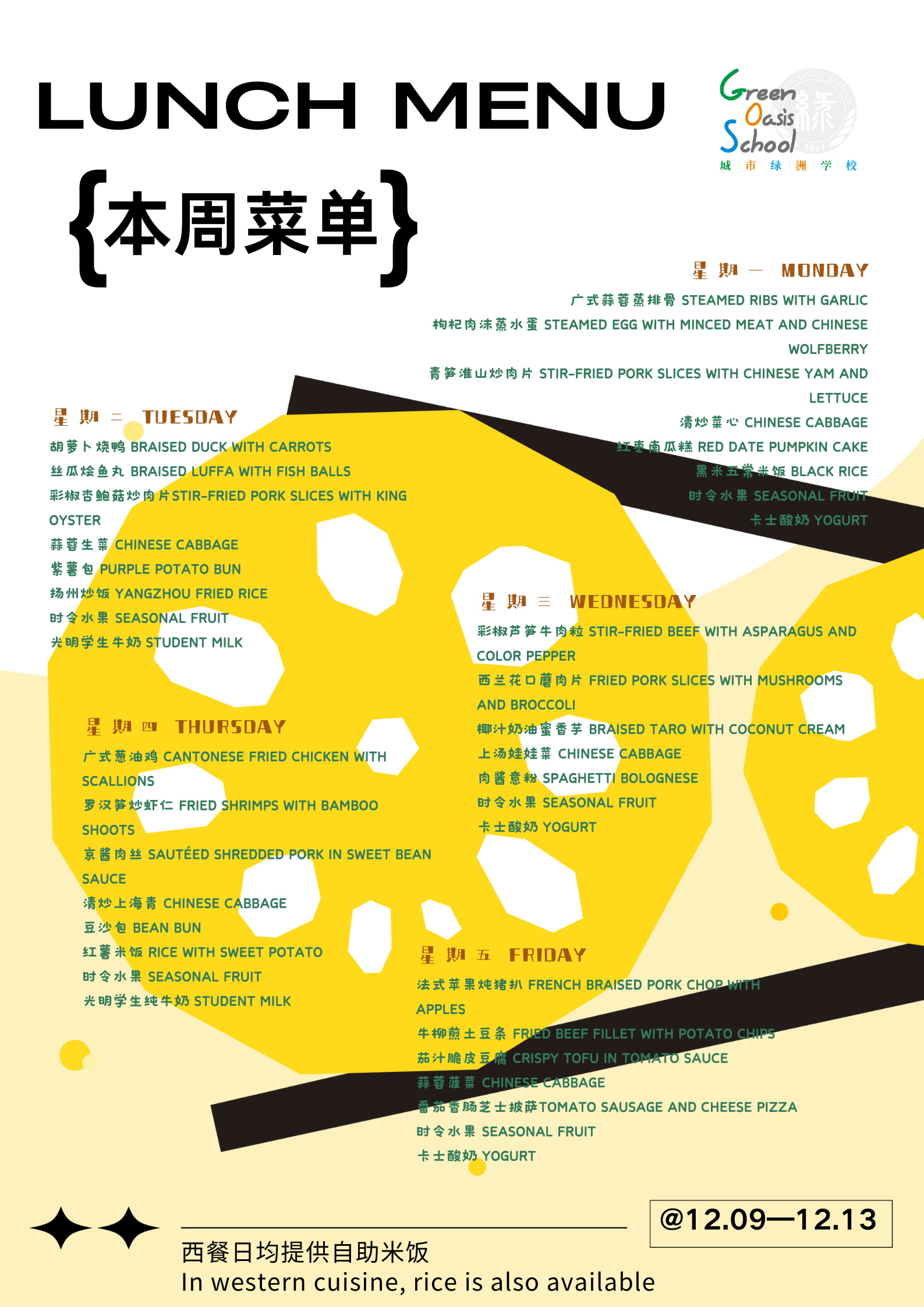 Green Oasis School Menu 2025/01/13-2025/01/17